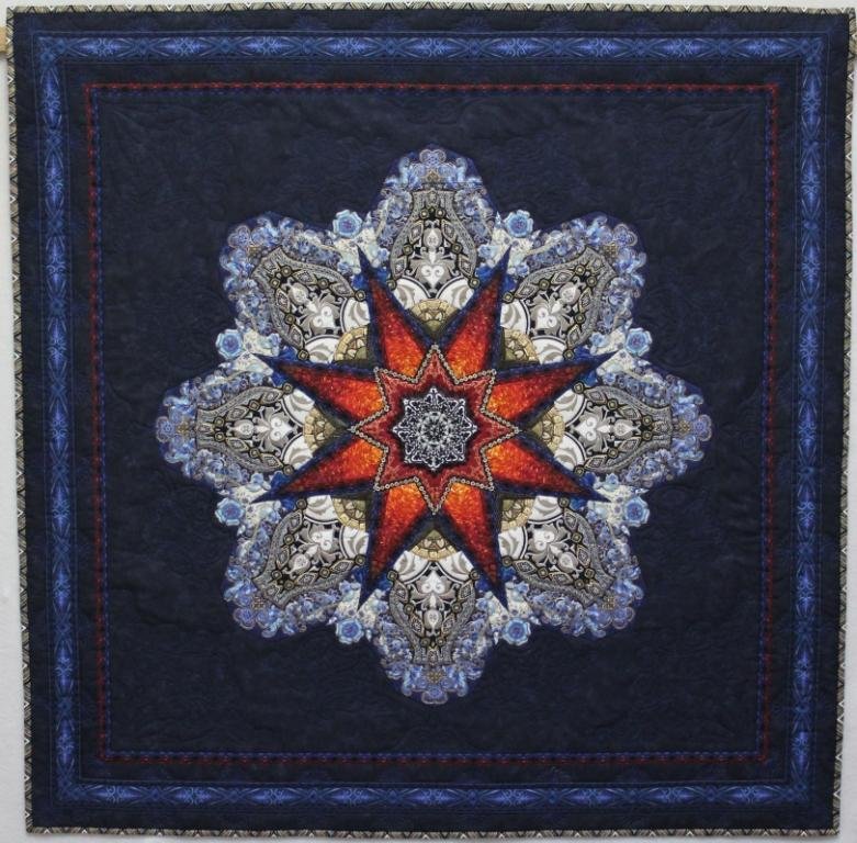 Igniting the Plasma - After reading Paula Nadelstern's Kaleidoscope quilts: An artist's journey continues book, I knew I had to make a kaleidoscope. It took about 14.9 metres of material fussy cut to make the 42" square top. The quilting designs were modified Dover copyright free with original elements added. The name of the quilt - well... I was watching Star Trek at the time!