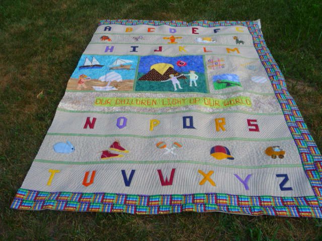 | Design Source - Description | Made as a raffle quilt for the Lymphoma Society in memory of Lauri Strauss Intintoli. A number of her friends get together each year to put together a quilt. The theme this year was Children light up our world. |