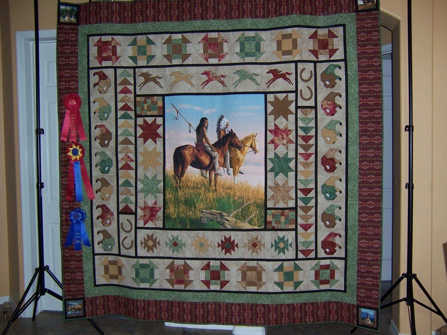 lonewolf The Hunt - I wanted to use the center panel in a quilt so I just started adding sections around the panel and kept building it out until I had the size I wanted. I just made it up as I went along, totally out of my comfort zone. I usually follow a pattern.