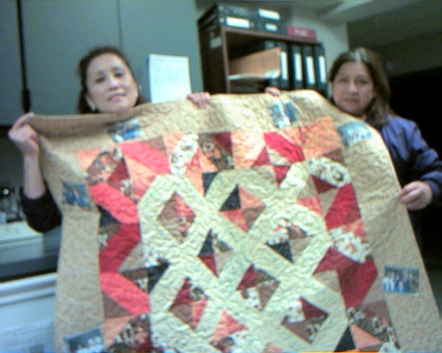 krhulljr Friendship Quilt - This quilt was made by myself and a friend, each block was hand signed by co-workers/friends as a going-away gift. We also included photos we had taken along the way of co-workers and place them on the border around the quilt.