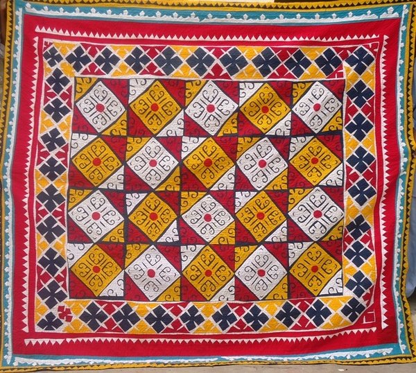 Keela Maya - A hand appliqued cotton ralli quilt from Pakistan. It is a completely hand stitched, hand quilted and back with hand block printed fabric.