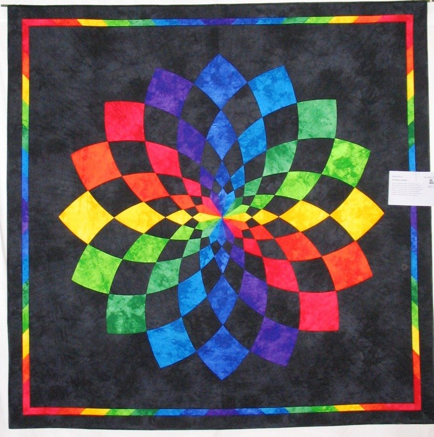 | Design Source - Description | Rainbow colors were used for the dahlia flower; Moda Marble black, for the background. The rainbow colors were carried through to the inner border. |