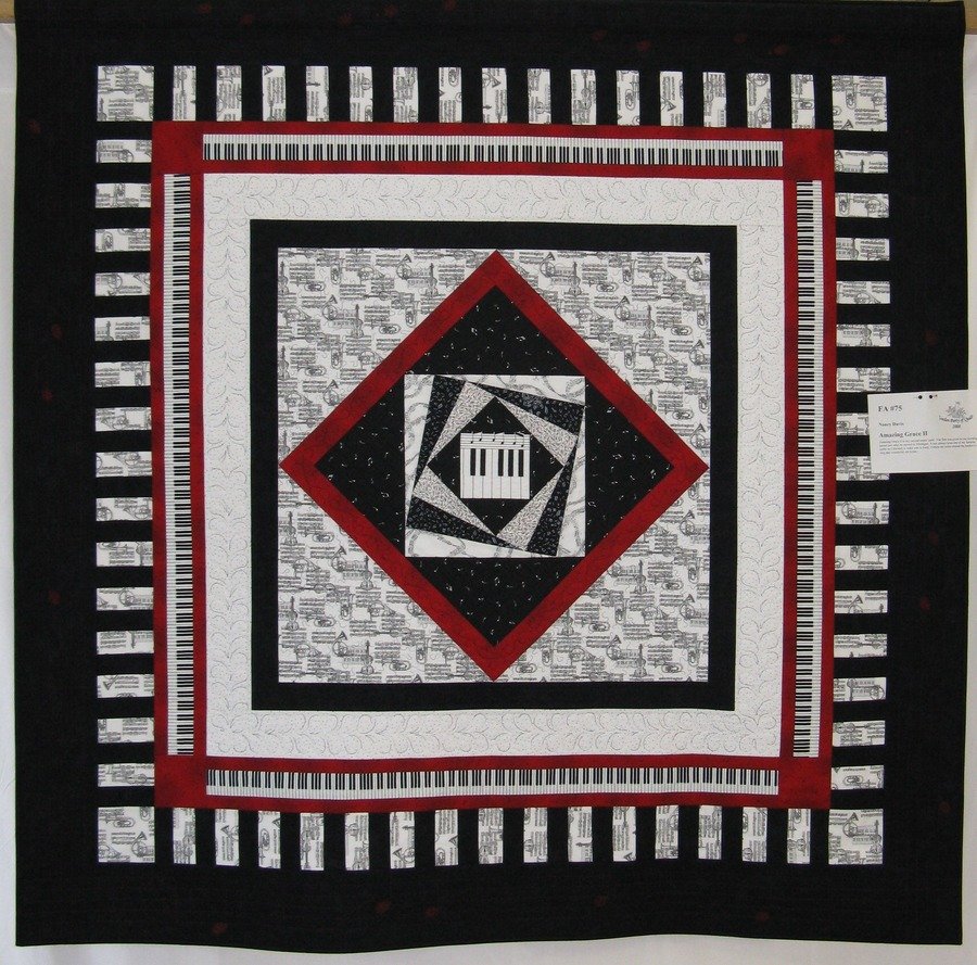 | Design Source - Description | Second in a series of music quilts. The score for "Amazing Grace" is quilted in red on the outer border. |