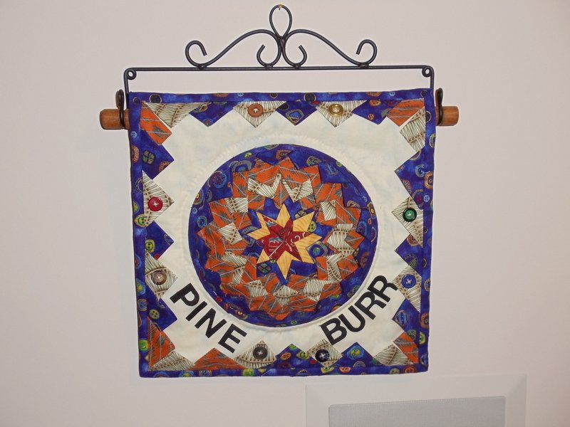 Wooda pine burr medallion - This is a small medalion pine burr wall hanging that I made according to the directions by Loretta Pettway Bennet for the Alabama State Archives Dept. This quilt is the state quilt of Alabama. I used this small quilt as an example for a pine burr workshop that I led. The pine burr design has a fascinating history.
