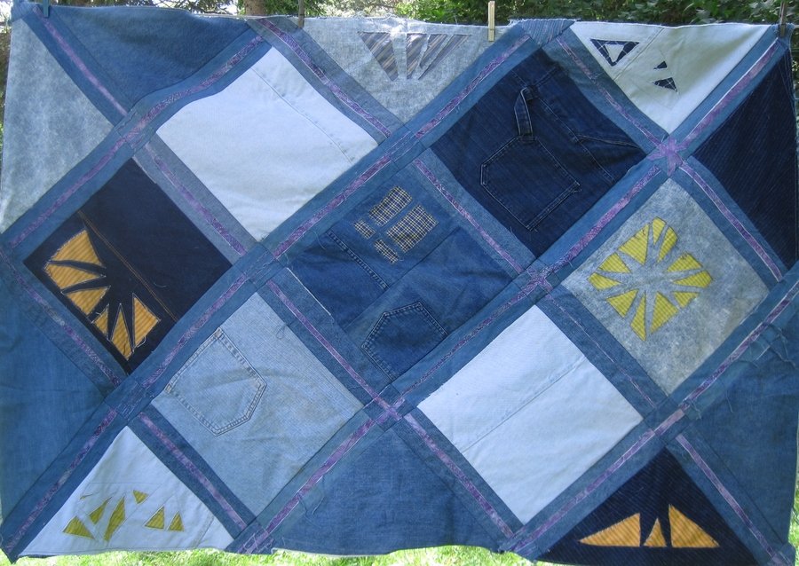 | Design Source - Description | I found a box in the attic labeled 'Skinny Jeans': they were so out of date (and ugly!) that there was nothing to do but cut them up.. |