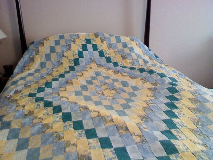 Maggie's first - Pastels with touch of teal, queen size. Currently in process of quilting