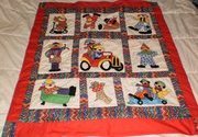 emscrafts Clowns - I made this for my grandson. My first quilt, It took me 4 months to complete. Appliqued each block.