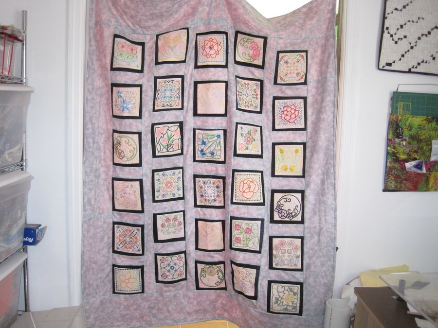| Design Source - Description | i embroidered free designs from designs by sick, then added borders and sewed into a quilt. it will be donated to the Myrtle Beach Hope House for homeless teenagers |