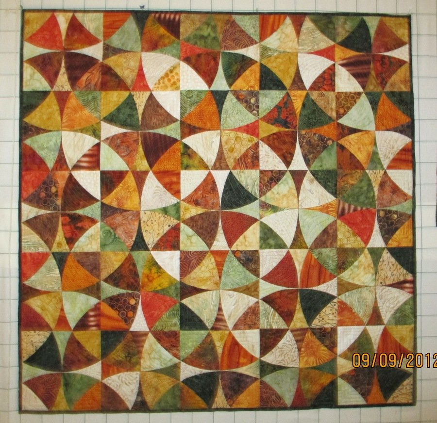 cblong03 Winding Ways - I made this quilt to go above the couch in my family room. I've been in the process of decorating in fall colors. Batiks are my favorite! This was a difficult block, initially, but I got the hang of it, after a while. Thank goodness for Accuquilt dies! I just started another one for a bed quilt with the same fabrics, plus more that I've been adding, whenever the good sales come around.