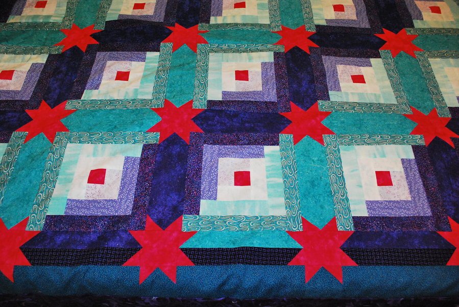 lmorens Shayna's Stars - My daughter and I picked the pattern and fabric for this when she started kindergarten. It got set aside to work on school projects, costumes, etc. I decided to finish it before she finished high school, and we did! It was quilted by Pat Sudano.