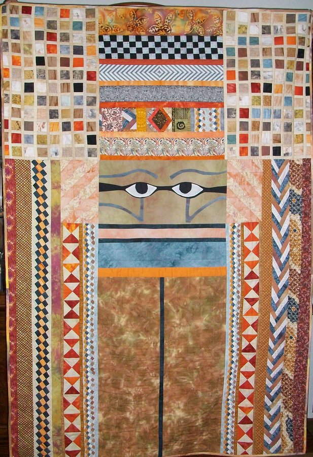 | Design Source - Description | When I saw an exibit of Egyptian artifacts I though an outercoffin looked just like a quilt. I took that idea and designed the tomb of the unknown quilter. |