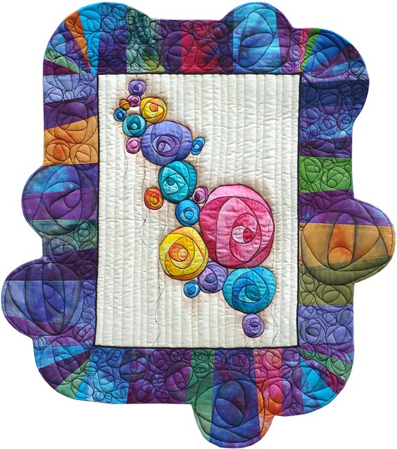 MMGriffiths Circle Circle Falling Down - stitched, hand painted on cotton and embellished with beads.