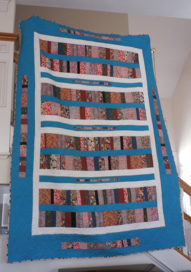 Wooda London DairyAyres - Over 20 years ago I was introduced to Liberty of London Fabric. I was unable to afford any at that time. Christmas time 2011 I found this wonderful store that sold Liberty Cotton Print Bundles... I purchased a bundle along with some yardage. No longer a garment sewer but now a quilter, my dream of using Liberty fabric came true. The backing is a black and white London Scene. Why the name? My last name is Ayres.