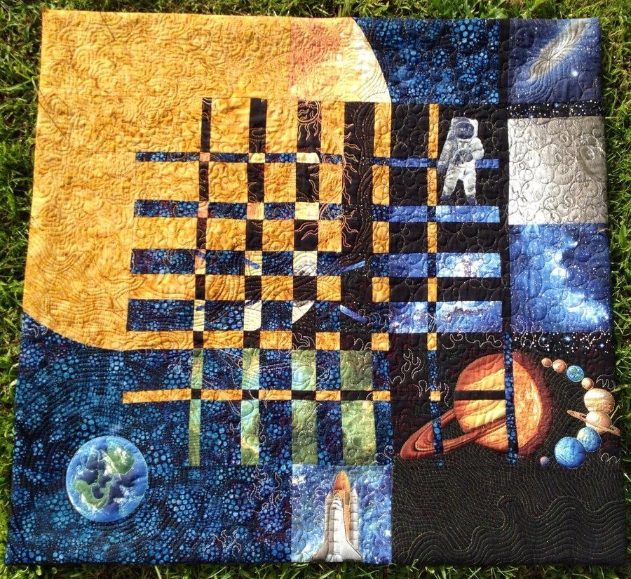 Alfon Anniversary - After I went to a Ricky's course in Girona I liked to tried this awesome tecnica My son choose the theme and the appliqué and quilting the rest. It was a birthday present to my husband who was born in 1969 and it was an idea of "the convergence anniversaries"