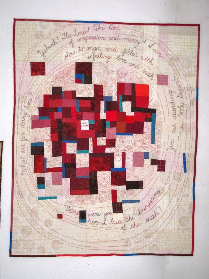 DebbyWeighsIn God Speaks - This quilt is one in the series The Housetop Quilts. Originally inspired by the Quilters of Gees Bend, I am incorporating God's word into simple abstract designs.