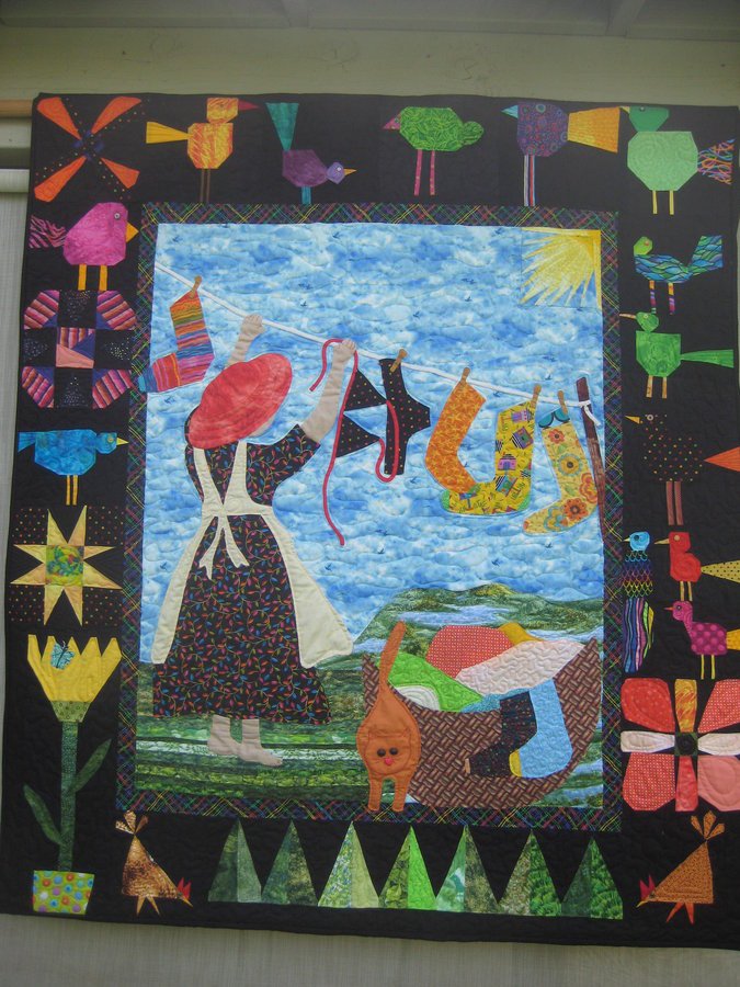 | Design Source - Description | Art quilt. Made just for the fun of it. Birds and socks were from a block swap on Mary Lou Weidman's Yahoo group |