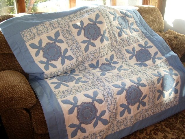 | Design Source - Description | I made this quilt for my granddaughter's Sweet 16th birthday. The roses, stems and leaves in each block are applique. It is my first quilt. |