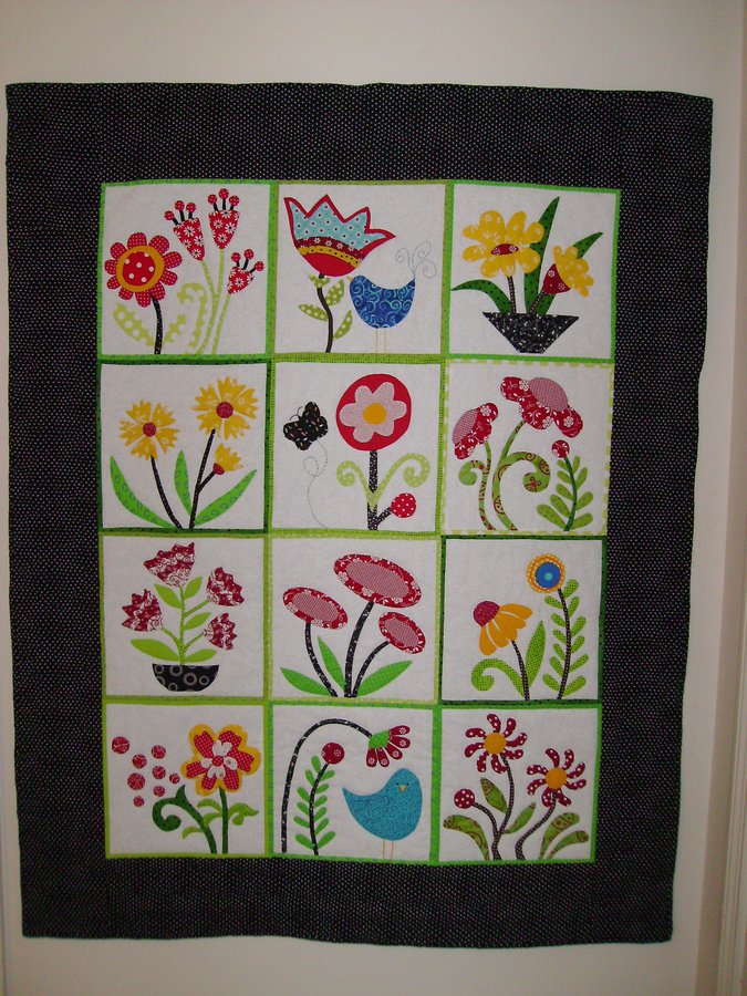 NanaPie Garden in Bloom - This quilt is my modified version of Piece O Cake's "My Whimsical Quilt Garden" pattern. This is my first attempt at hand applique - loved it, and it won't be my last!