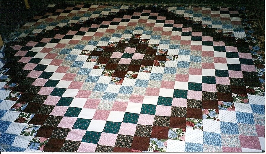 | Design Source - Description | My first full-sized quilt. Jumped right in with both feet and made a monster of a King sized Trip Around the World. When I saw what quilts cost, I thought, "I could do that!" I've been hooked ever since. |