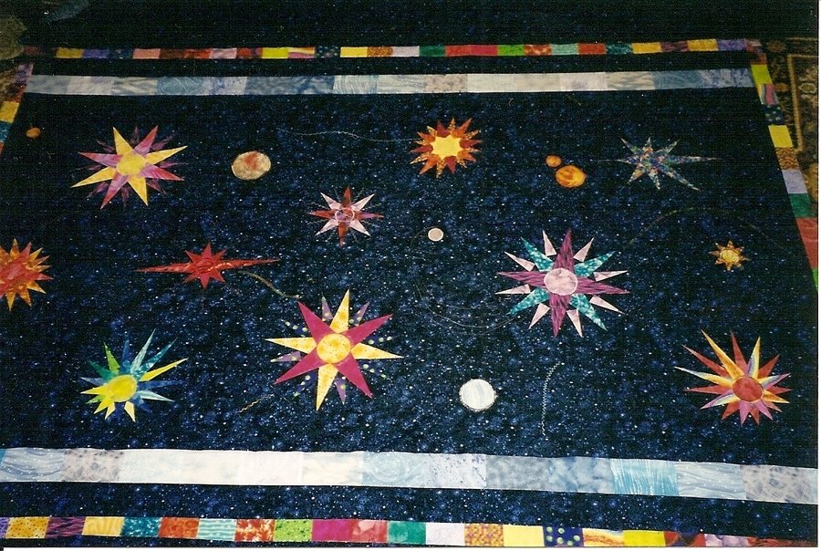 | Design Source - Description | Paper Pieced stars on night sky fabric for my stargazing brother. |
