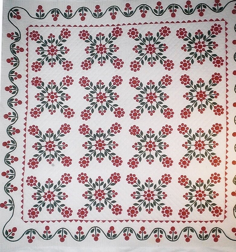 dottiedavis Shanes Cherry Rose - lots and lots of quarter size circles close to 1000 I think. Bonnie did the spider webs for me. The spider is important to native americans she is the creater of the earth. Anyway I love the webs. Quilt is quilter with a cotton batt and a thin poly batt on top to make the cherries pop.