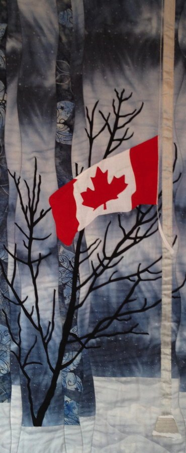 BrandyLynn Young Soldier - Upon hearing of the death of a young Canadian Trooper killed by a roadside bomb in Afghanistan in 2007, I was torn with grief at the notion that my cousin, his best friend who had survived the explosion, would have to deal with that vision and such a profound loss for the rest of his life. This art quilt is made to honour Canadian families suffering the loss of a loved one and the Canadian soldiers still suffering from post traumatic stress.
