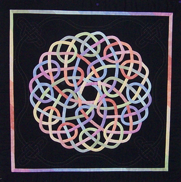 | Design Source - Description | I based this design on illustrations from the book "Mathematics of the Celtic Knot" which I purchased in Ireland. There are thirteen different pastel colors pieced into an unbroken knot. |