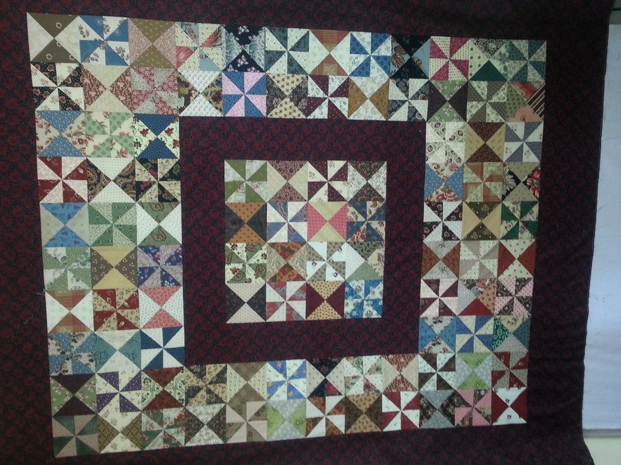 | Design Source - Description | Love to make, and the look of, pinwheel blocks. When arranging on design wall, decided I wanted a break in the pattern so added the center border. |