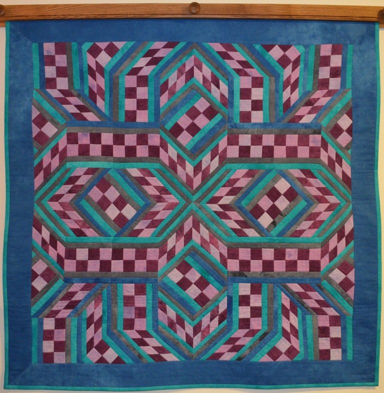 CMOELLERS Arpeggio - Arpeggio was designed in EQ7. I was putting gas in my car one day and was looking down and noticed the interesting design on the tires. Light bulb moment. I had to make a quilt with this design. I played in EQ7 and came up with this quilt. It was entered in Ricky's 5 Hand Dye Challenge. It did not win but I love it, it made me really step out of my box and try something new and different.