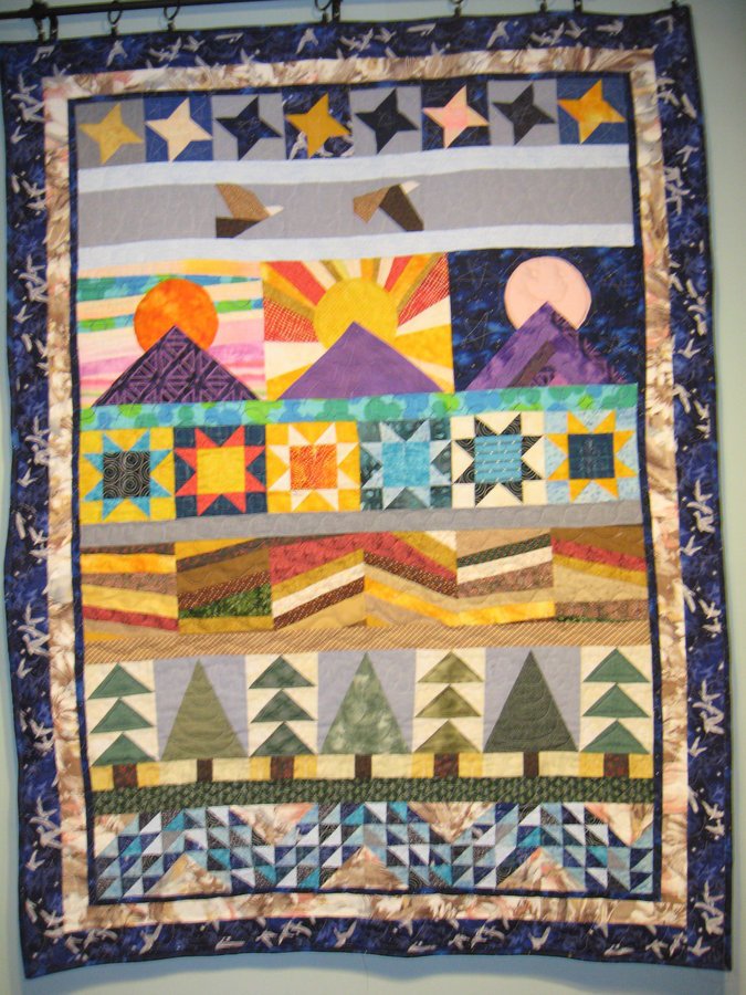 debbiethompson America the Beautiful - Made as part of a class, completely from stash scraps of all types as a means to practice several piecing techniques. Also the first piece I ever tried free motion quilting without pattern markings.