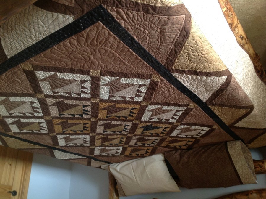 bystrauss Chocolate Sundae - I designed the quilt around the cake stand block. The various free motion quilting techniques are what I've learned from teachings with the pros.