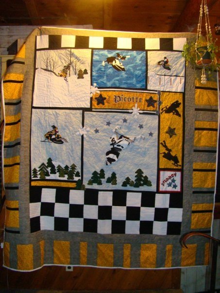 A quilt I made for a cousin who used to be a stunt snowmobiler. www.morelcabincreations.com |