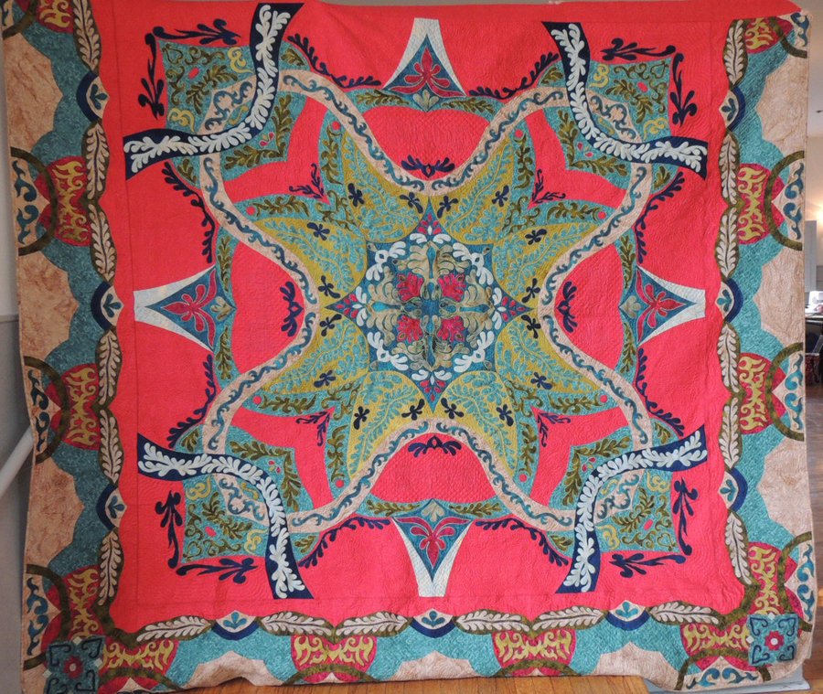 paulaj The Jewel in the Lotus - I started this quilt in 2011 shortly after attending the Ricky Tim's Super Seminar on Cape Cod (I was the local event coordinator). It took me 2 1/2 years to complete. It was a gift to my daughter and her husband for their 12th anniversary.