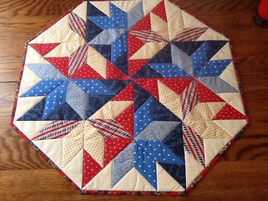 mrsreyes For the Fourth - I took Judy Martin's pattern, which was for a quilt, and adapted it to create this tabletop quilt. I'm working on smaller projects for now as a way to develop my skills with machine quilting.
