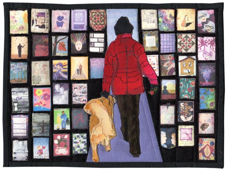Judyc Good Job, Everyone - My last quilt donated for the last year of Alzheimer's Art Quilt Initiative is included in the August auction. It is a Thank You to all of the artists who have contributed to the remarkable charity started by Ami Simms and embraced by so many quilters. Ami and her dog, Scooter are leaving an exhibit of quilts made for the traveling exhibit, "Alzheimer's; Heartbreak to Hope".