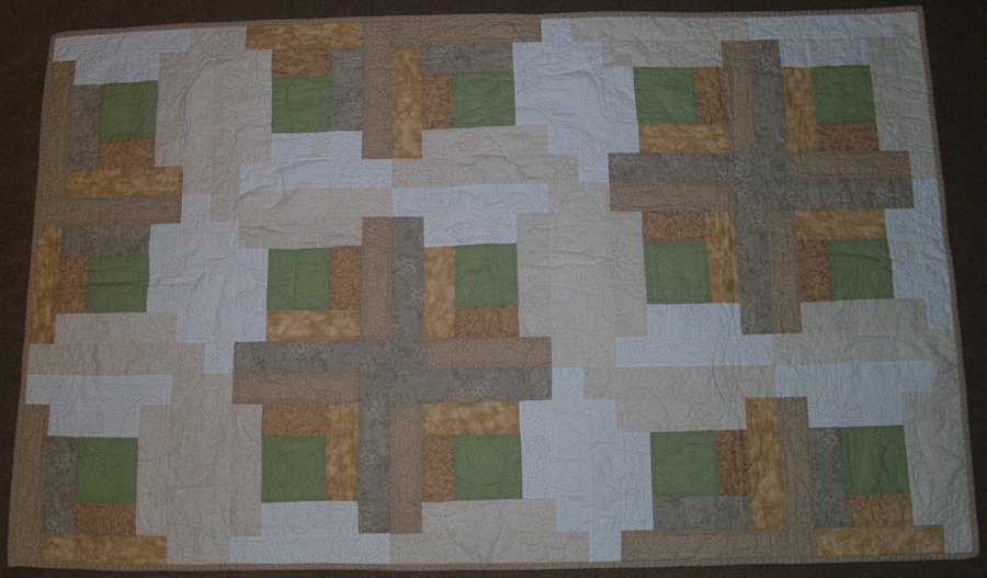 | Design Source - Description | Crib quilt for my third grandchild due this month. Log cabin block drawn in an EQ7 workshop in May and finished in July. Quilting from EQ7 appliques turned into stencils. |