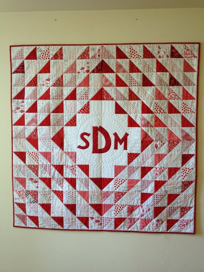 gynconnie Wedding Quilt for Matt and Sarah - Signature quilt presented as first anniversary gift. Wedding guests signed muslin triangles that were later pieced into the quilt top.