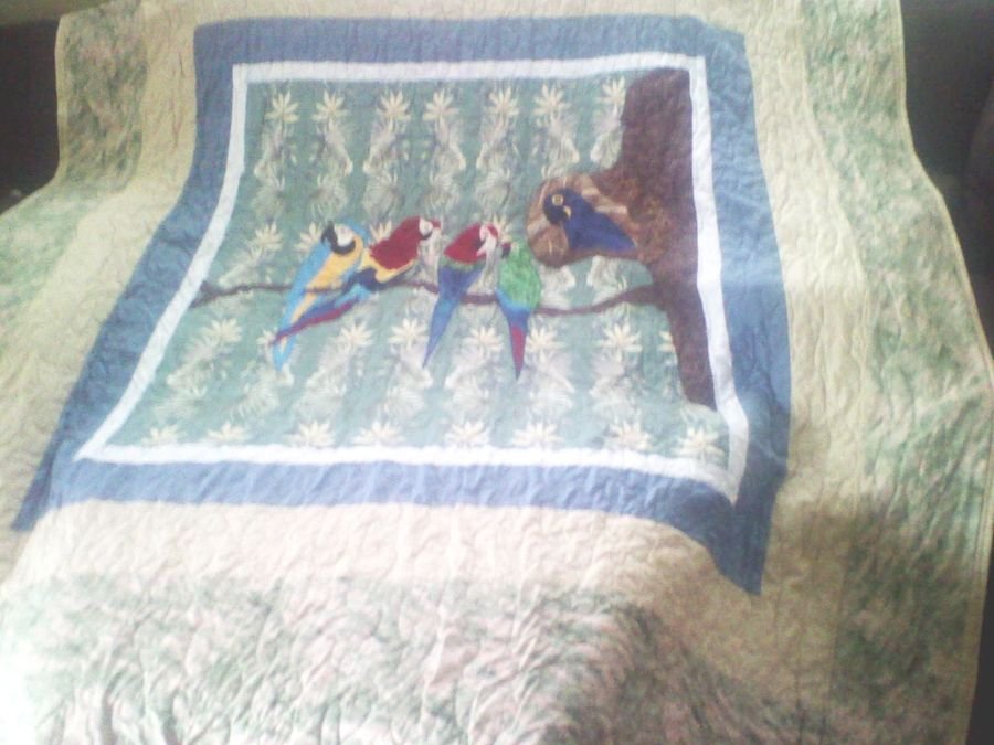 DianeMcKinney parrots on a branch - A more affordable parrot quilt.