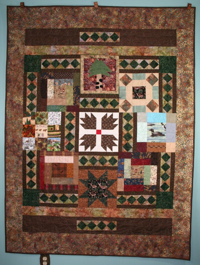 joytoquilt Up North - I won the blocks in a guild lottery block drawing with a Northwoods theme. The setting was inspired by a book, Circle of Nine, by Janet Houts and Jean Ann Wright.