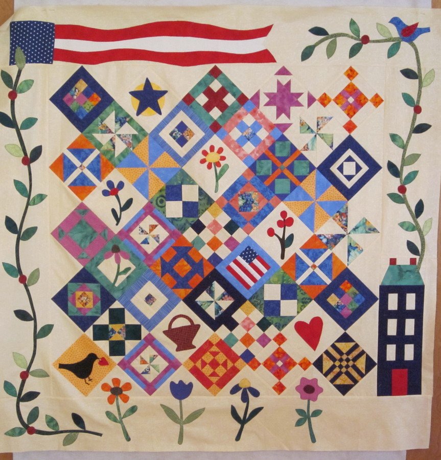 Kathryn $5 Block of the Month - This pattern is not shown on Under the Garden Moon's website. The Fabric Patch did this as a $5 Block of the Month and used this pattern. She provided part of the pattern each month, we provided our own fabric. Many people did not like the 5-1/2 inch squares. I didn't mind at all. I would have liked to have been guided a bit on fabric selection as I would have liked a bit more Kansas Troubles type of fabrics, but these brights turned out great.