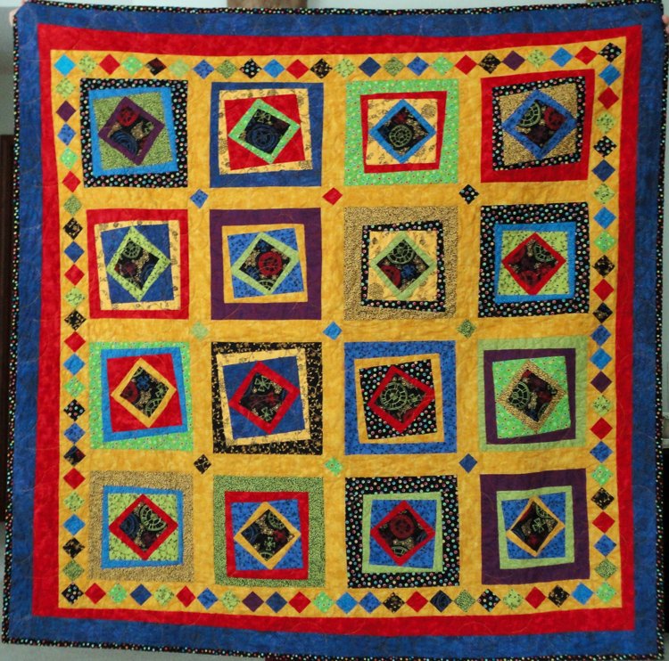 | Design Source - Description | I began this quilt with scraps. The border diamonds were a challenge. I finally had it quilted in 2013. |