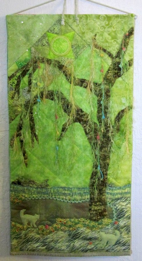 kkaserco Dream Willow, Chartreuse - This was part of a color challenge using Joan Wolframs' 24 colors, by my friendship group, VisTA. I had been wanting to memorialize a willow tree I used to drive by when going to work. In the spring, with the sun rising behind it, especially after a rain, it was spectacular.