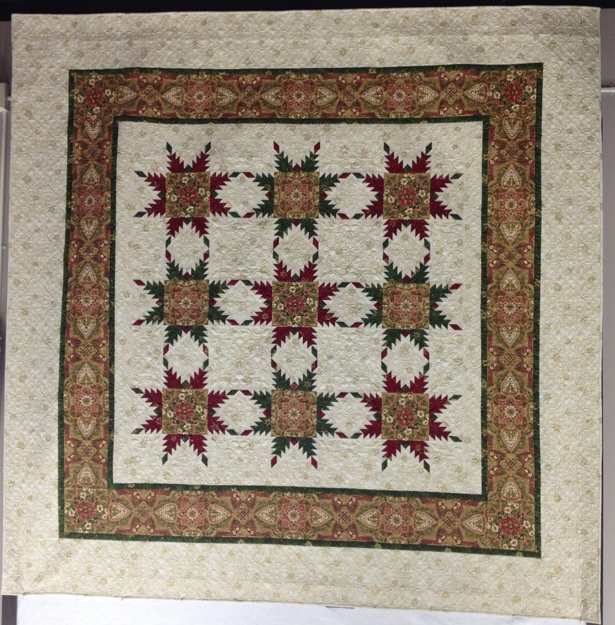 | Design Source - Description | Feathered Star with alternating fussy cut centers and fussy cut inner border of Holiday Flourish prints |