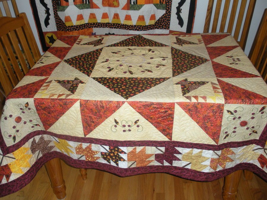 maxinet Maple leaf - Pieced with hand embroidery and applique.