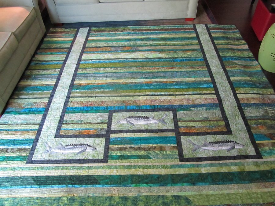 sjvetter Swimming with the Sturgeons - I designed this quilt for my nephew who is an avid sturgeon fisherman. I researched the type of sturgeon he fishes for and designed appliques to look like White Sturgeon.