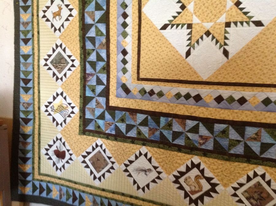 mpullum Becoming a out door woman - I go to BOW (Becoming a Outdoor Wamon) in Alabama every year. They have a action every year to raise money for women to attend that can't afford to pay. I made this quilt so other women can learn to enjoy our great outdoors. It is our day, Sun rise, walking through the trees, our classes, and all the birds flying around.
