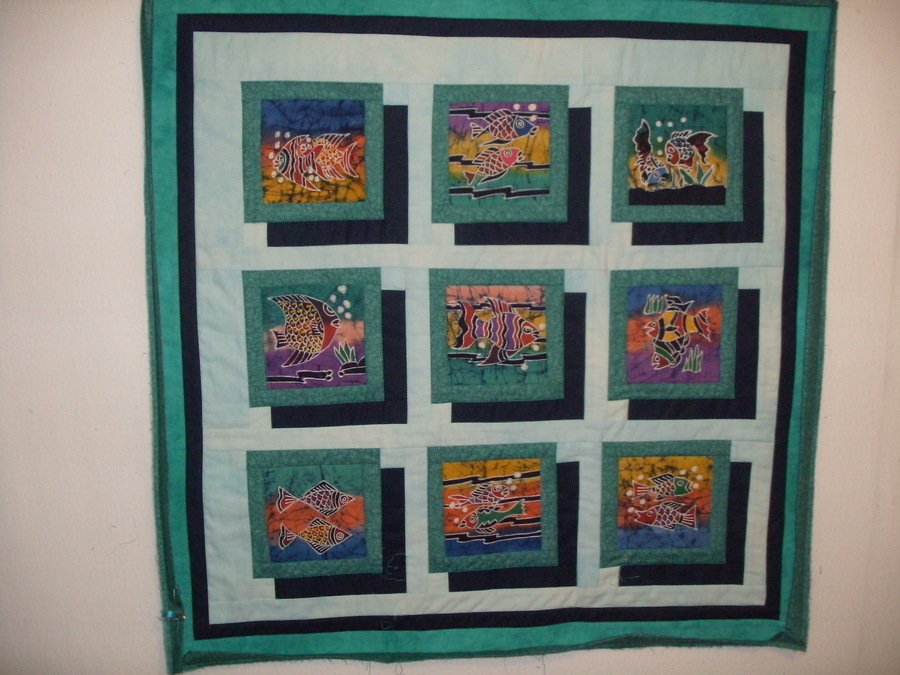 | Design Source - Description | Purchased hand painted Island Batik fish squares set in simple and dramatic pattern. |