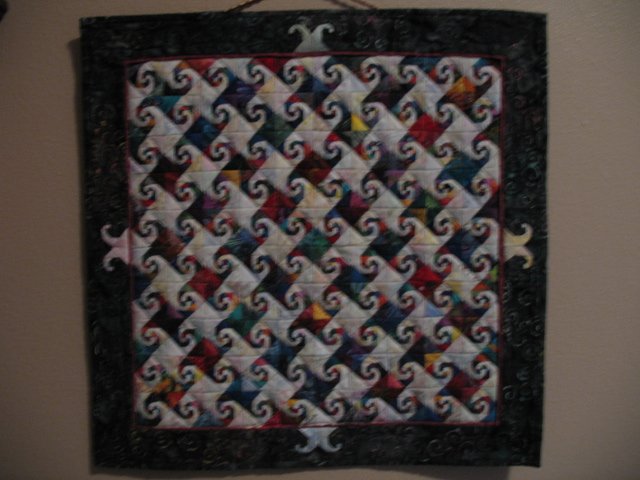 wcfav The Great Snail Escape - Miniature scrap quilt. Enjoyed working tiny...100 -1" blocks, with 20 pieces per inch/block.