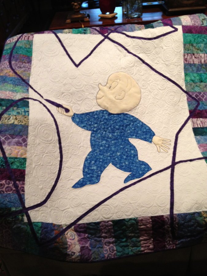 DonnaBatiks Henry and the Purple Crayon - I have 23 grand nieces and nephews. And they all get a quilt when they are born! I like to take favorite children books and make a quilt for them. My nephew, Sam's was "Henry and the Purple Crayon". I had not heard of it but when I went to buy the book they were celebrating their 50th anniversary edition! Sam and his wife did not want to know the sex of their baby. But their little girl, Stella, got a "Henry" quilt!