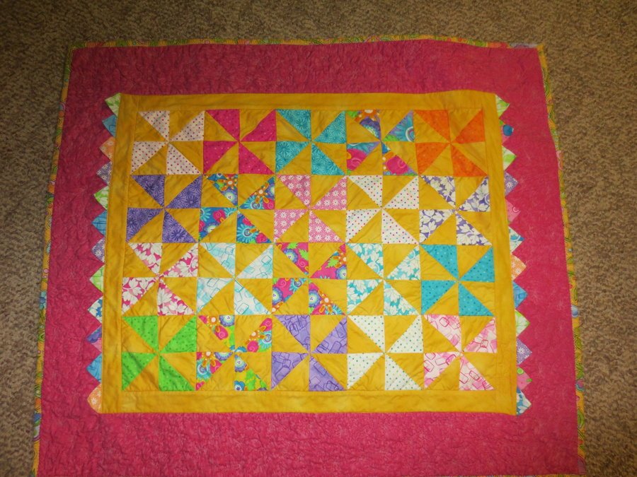CarrieG Pinwheel Baby Quilt - Cute pattern with easy to make prairie points on the inside border. I changed up the # of blocks from the original pattern.